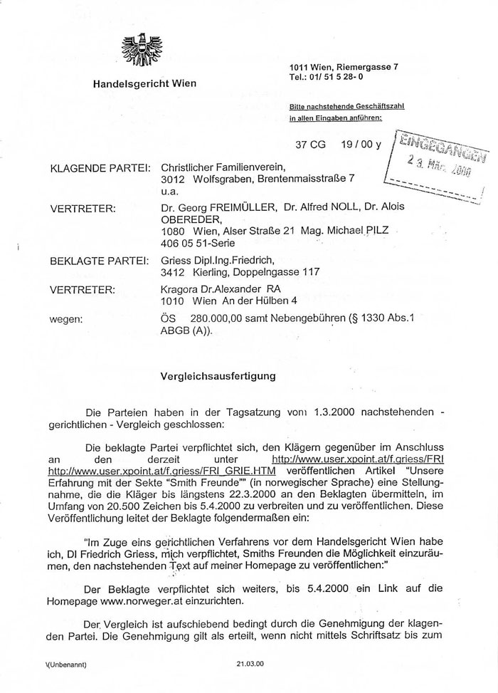 Vergleichsurteil des Handelsgerichts Wien vom 1. März 2000 [PDF]