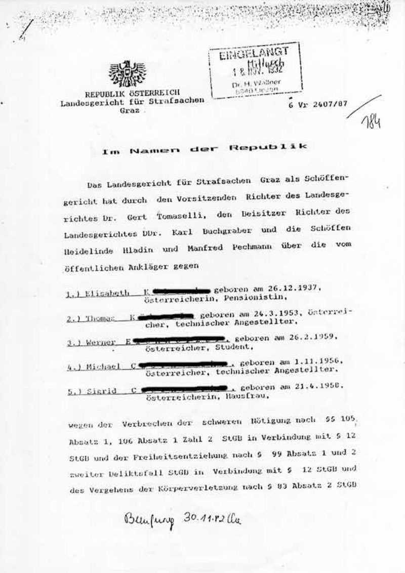 Av juridiske hensyn ble familienavn til personer med rettskraftig dom gjort ugjenkjennelig.